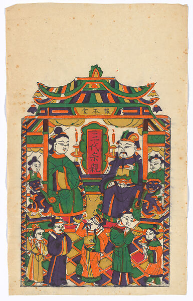- 現代 佚名 三代宗親 彩印木刻年畫 河南朱仙鎮