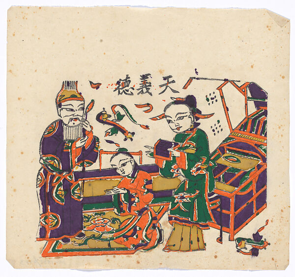 - Title: New Year Picture of scene in the drama, Sanniang jiaozi (Lady Sanniang Instructing Her Son)