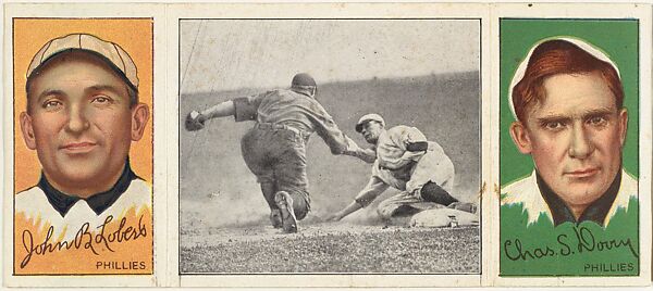 "Lobert Gets Tenney," with John Lobert and Charles F. Dooin, from the series Hassan Triple Folders (T202)