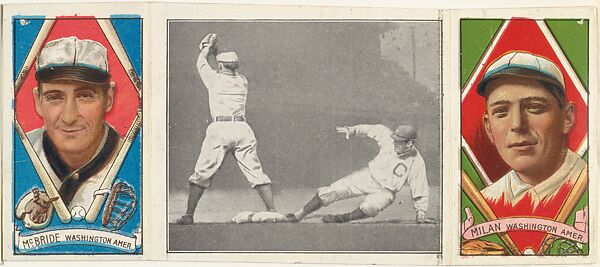 - Title: "Schaefer on First," with George F. McBride and Clyde Milan, from the series Hassan Triple Folders (T202)