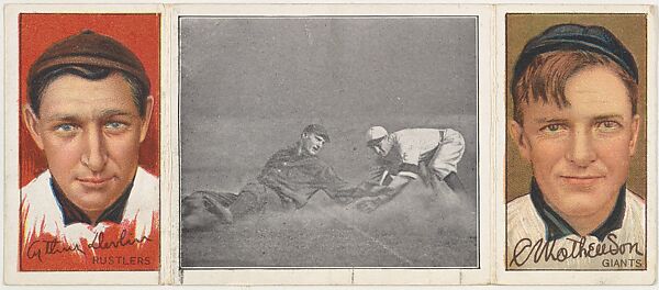 - Title:"Too Late For Devlin," with Arthur Devlin (Rustlers) and Mathewson (Giants), from the series Hassan Triple Folders (T202)