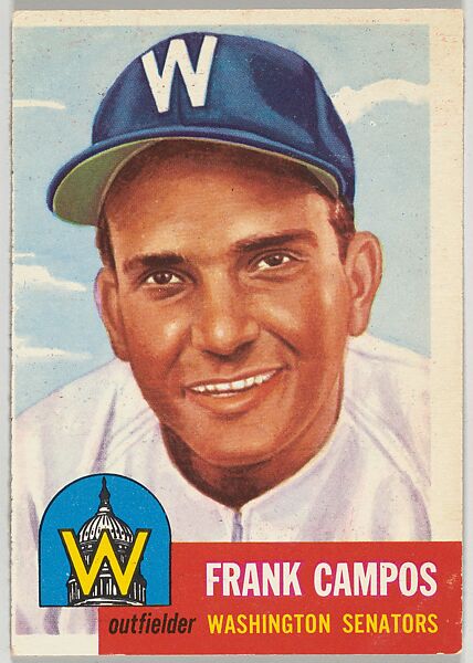 - Title: Card Number 51, Frank Campos, Outfielder, Washington Senators, from the series Topps Dugout Quiz (R414-7), issued by Topps Chewing Gum Company