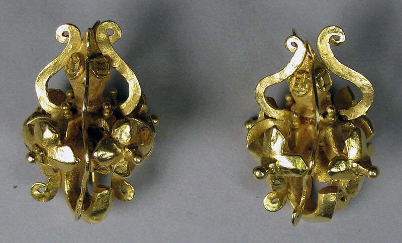 - Title:Pair of Large Hexagonal Ear Ornaments