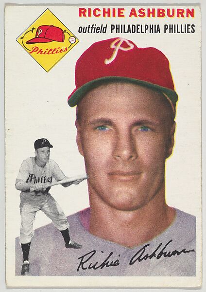 • Title: Card Number 45, Richie Ashburn, Outfield, Philadelphia Phillies, from "1954 Topps Regular Issue" series (R414-8), issued by Topps Chewing Gum Company.