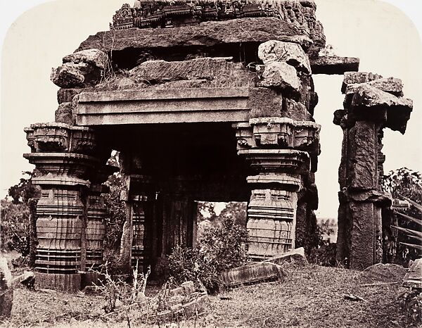 This work of art is currently on loan to the museum.Tripe’s visit to Hullabede in December 1854 marked the first time he used photography to document the architectural riches of south India. Trained as a military surveyor, he aimed to present information as comprehensively and unambiguously as possible. He made six photographs of this minor shrine west of the main twelfth-century temple complex dedicated to Shiva. He circled the building, taking photographs from each compass point before moving closer to record intimate details.
