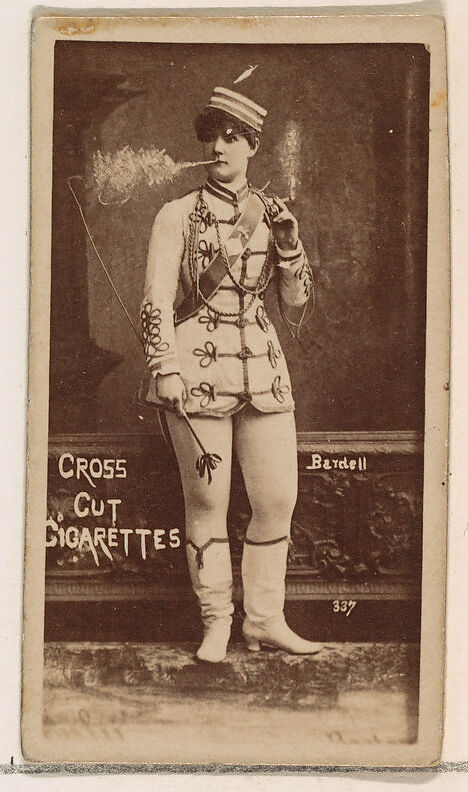 Trade cards from the set "Actors and Actresses" (N145-1), issued in the 1880s by W. Duke Sons & Co. to promote Cross Cut Cigarettes. There are eight subsets of the N145 series. Various subsets sport different card designs and also promote different tobacco brands represented by W. Duke Sons & Company. This card is from the first subset, N145-1. Note that actors' names are spelled differently on cards throughout set and are not dependable for accuracy.