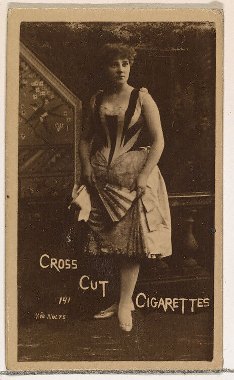 Trade cards from the set "Actors and Actresses" (N145-1), issued in the 1880s by W. Duke Sons & Co. to promote Cross Cut Cigarettes. There are eight subsets of the N145 series. Various subsets sport different card designs and also promote different tobacco brands represented by W. Duke Sons & Company. This card is from the first subset, N145-1. Note that actors' names are spelled differently on cards throughout set and are not dependable for accuracy.