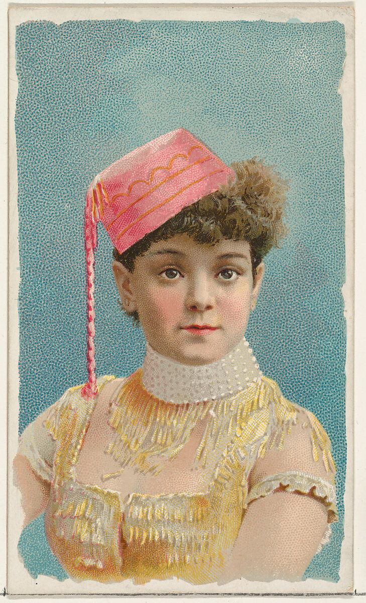 - Title: Actress wearing pink fez, from Stars of the Stage, First Series (N129) issued by W. Duke, Sons & Co. to promote Honest Long Cut Tobacco