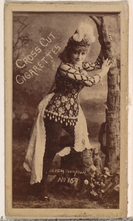 Card Number 159, Lydia Thompson, from the Actors and Actresses series (N145-1) issued by Duke Sons & Co. to promote Cross Cut Cigarettes
