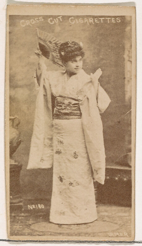 Trade cards from the set "Actors and Actresses" (N145-1), issued in the 1880s by W. Duke Sons & Co. to promote Cross Cut Cigarettes. There are eight subsets of the N145 series. Various subsets sport different card designs and also promote different tobacco brands represented by W. Duke Sons & Company. This card is from the first subset, N145-1. Note that actors' names are spelled differently on cards throughout set and are not dependable for accuracy.