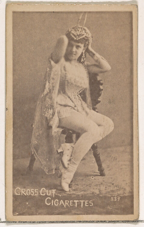 Trade cards from the set "Actors and Actresses" (N145-1), issued in the 1880s by W. Duke Sons & Co. to promote Cross Cut Cigarettes. There are eight subsets of the N145 series. Various subsets sport different card designs and also promote different tobacco brands represented by W. Duke Sons & Company. This card is from the first subset, N145-1. Note that actors' names are spelled differently on cards throughout set and are not dependable for accuracy.