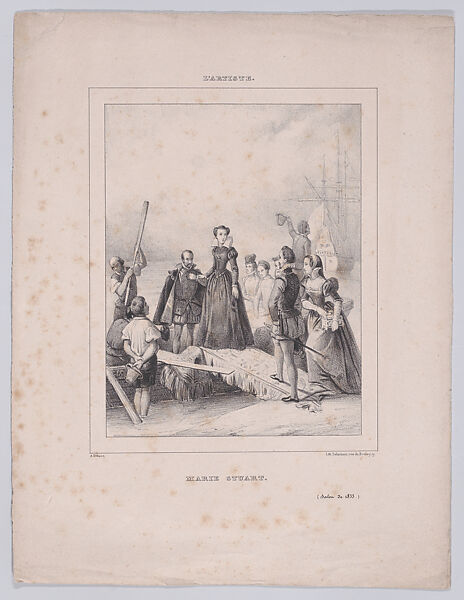 - Title: Mary, Queen of Scots embarking at Calais to return to Scotland, from "L'Artiste"
