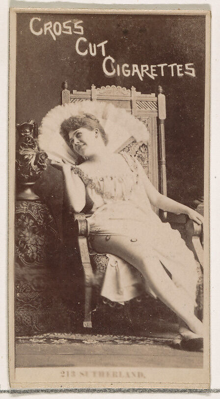 Trade cards from the set "Actors and Actresses" (N145-2), issued in the 1880s by W. Duke Sons & Co. to promote Cross Cut Cigarettes. There are eight subsets of the N145 series. Various subsets sport different card designs and also promote different tobacco brands represented by W. Duke Sons & Company. This card is from the second subset, N145-2. Note that actors' names are spelled differently on cards throughout set and are not dependable for accuracy.