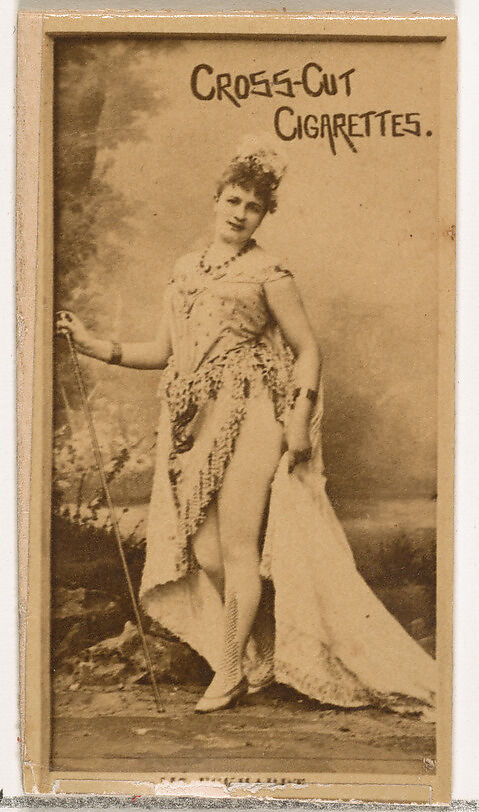 Trade cards from the set "Actors and Actresses" (N145-2), issued in the 1880s by W. Duke Sons & Co. to promote Cross Cut Cigarettes. There are eight subsets of the N145 series. Various subsets sport different card designs and also promote different tobacco brands represented by W. Duke Sons & Company. This card is from the second subset, N145-2. Note that actors' names are spelled differently on cards throughout set and are not dependable for accuracy.