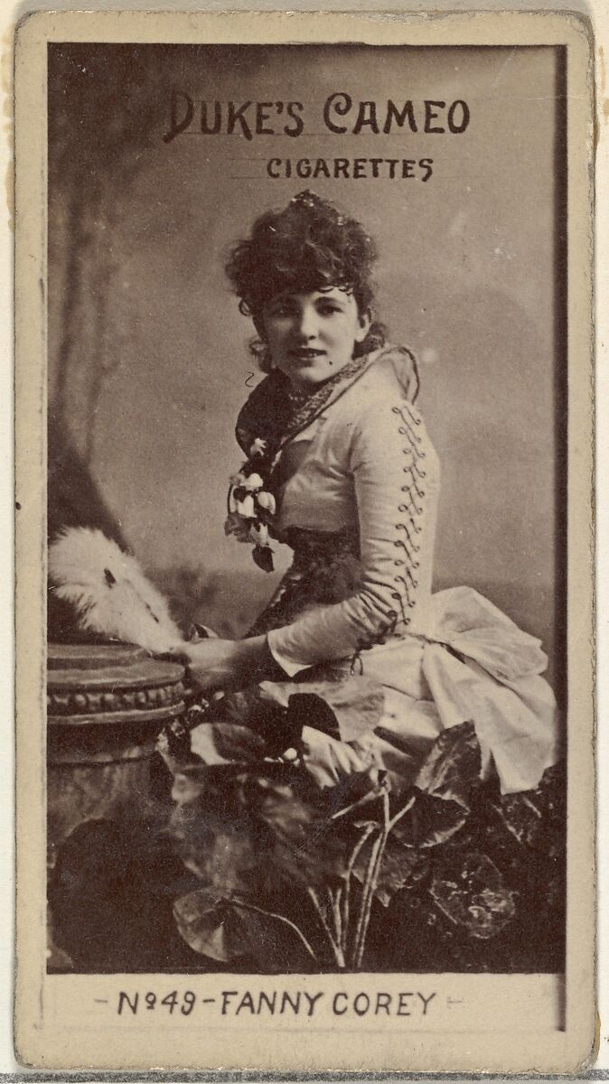 Card Number 49, Fanny Corey, from the Actors and Actresses series (N145-4) issued by Duke Sons & Co. to promote Cameo Cigarettes