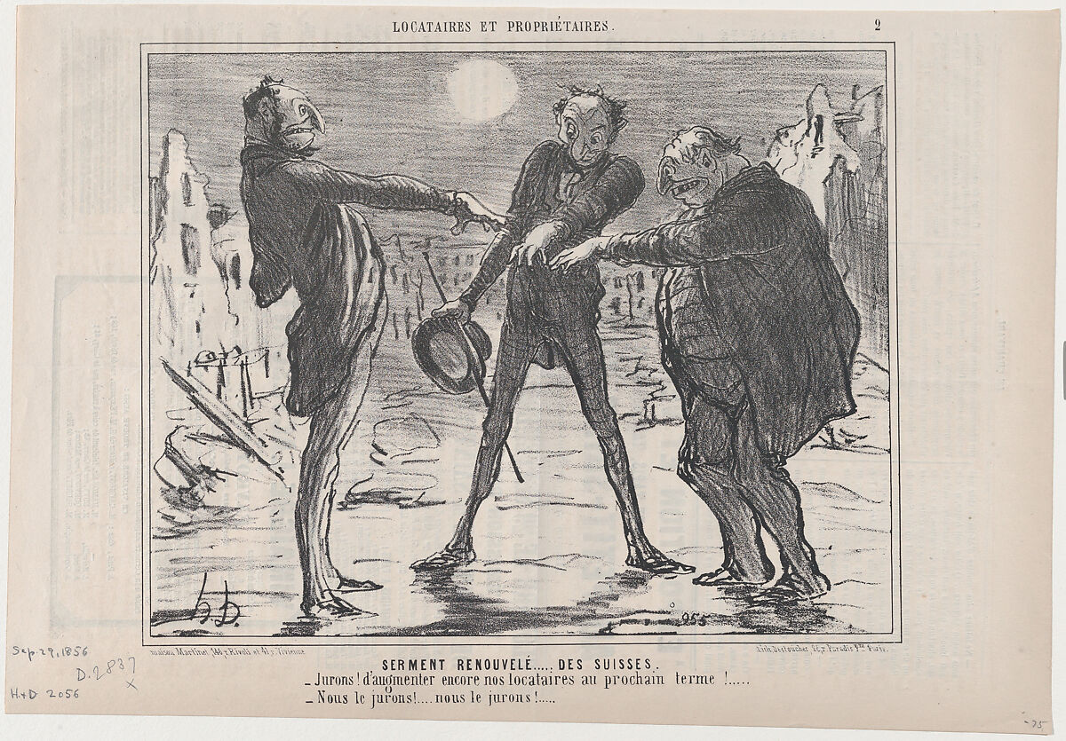 - Title: Serment Renouvelé...des Suisses, from Locataires et Propriétaires, published in Le Charivari, September 29, 1856