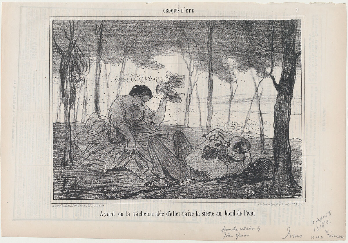 - Title: Ayant eu la facheuse idée d'aller...au bord de l'eau, from Croquis d'Été, published in Le Charivari, September 3, 1856