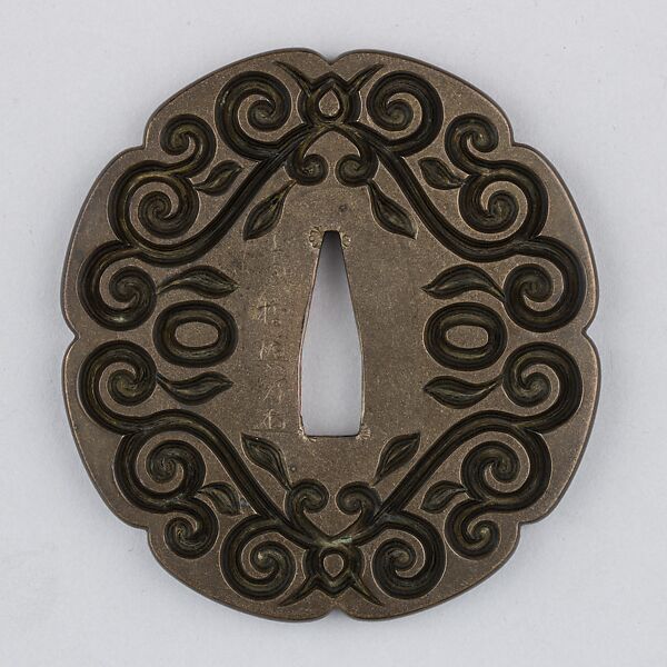 A tsuba is a sword guard and part of a sword mounting. It is mounted between the sword’s blade and grip to protect the user’s hands.