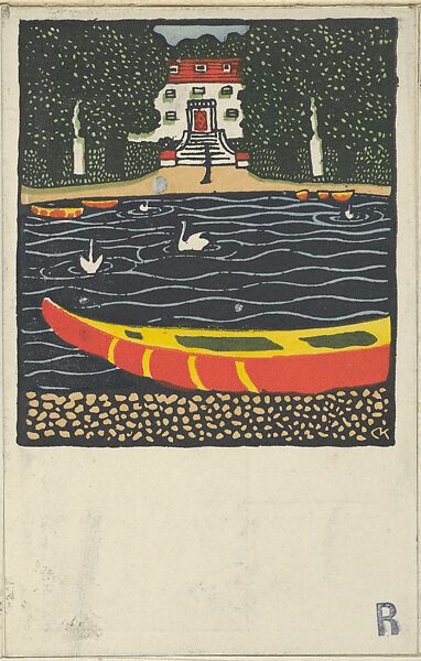 - Title:Pond with Boat and Swans