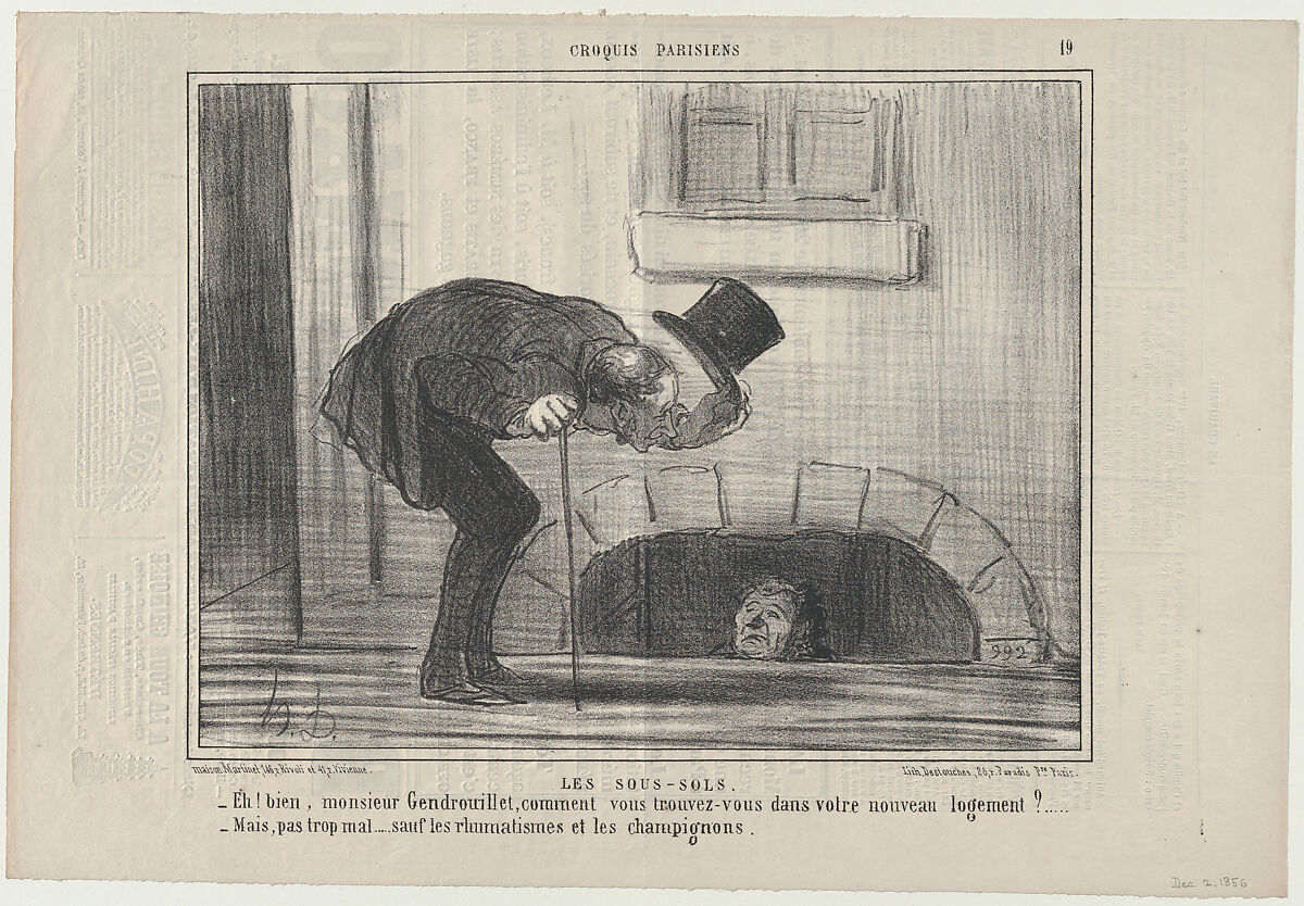- Title:Les Sous-Sols, from Croqius Parisiens, published in Le Charivari, December 2, 1856