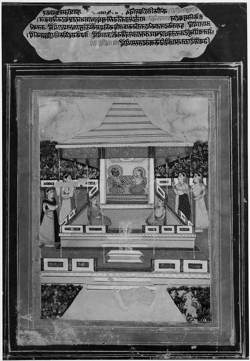 - Title: Krishna and Radha in Garden Pavilion with Female Attendants