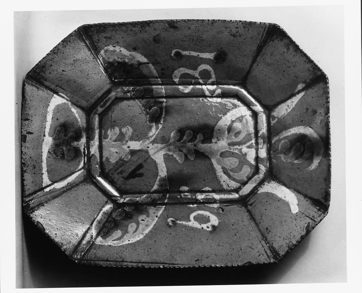 The decoration on this dish is an example of the enduring tradition of Pennsylvania German pottery, whereby the potter continues to work in a manner of slip decoration that dates decades earlier.