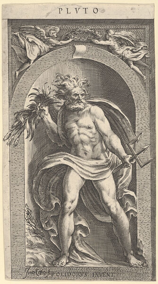- Title: Neptune standing in a niche holding a trident in his left hand, foliage in his right