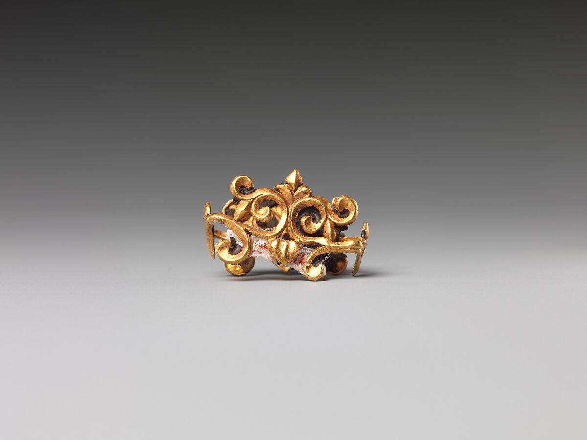 The nomadic communities of Central Asia used such plaques to embellish clothing and horse trappings. As these nomadic cultures herded animals and were constantly moving, their artistic production was expressed in portable objects that marked the wearer’s status and wealth. The outstanding preservation of these fragile ornaments suggests they were used in conjunction with burials, where the body was aggrandized with valuable textiles and augmented with gold. Although it is difficult to date and place these objects geographically, their presence in Central Asia and has a long, established history.