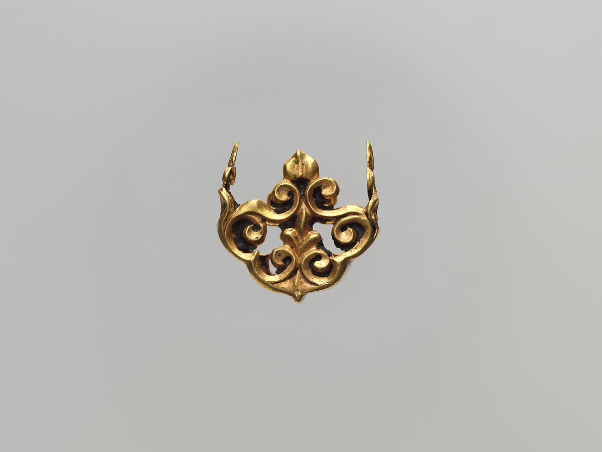 The nomadic communities of Central Asia used such plaques to embellish clothing and horse trappings. As these nomadic cultures herded animals and were constantly moving, their artistic production was expressed in portable objects that marked the wearer’s status and wealth. The outstanding preservation of these fragile ornaments suggests they were used in conjunction with burials, where the body was aggrandized with valuable textiles and augmented with gold. Although it is difficult to date and place these objects geographically, their presence in Central Asia and has a long, established history.