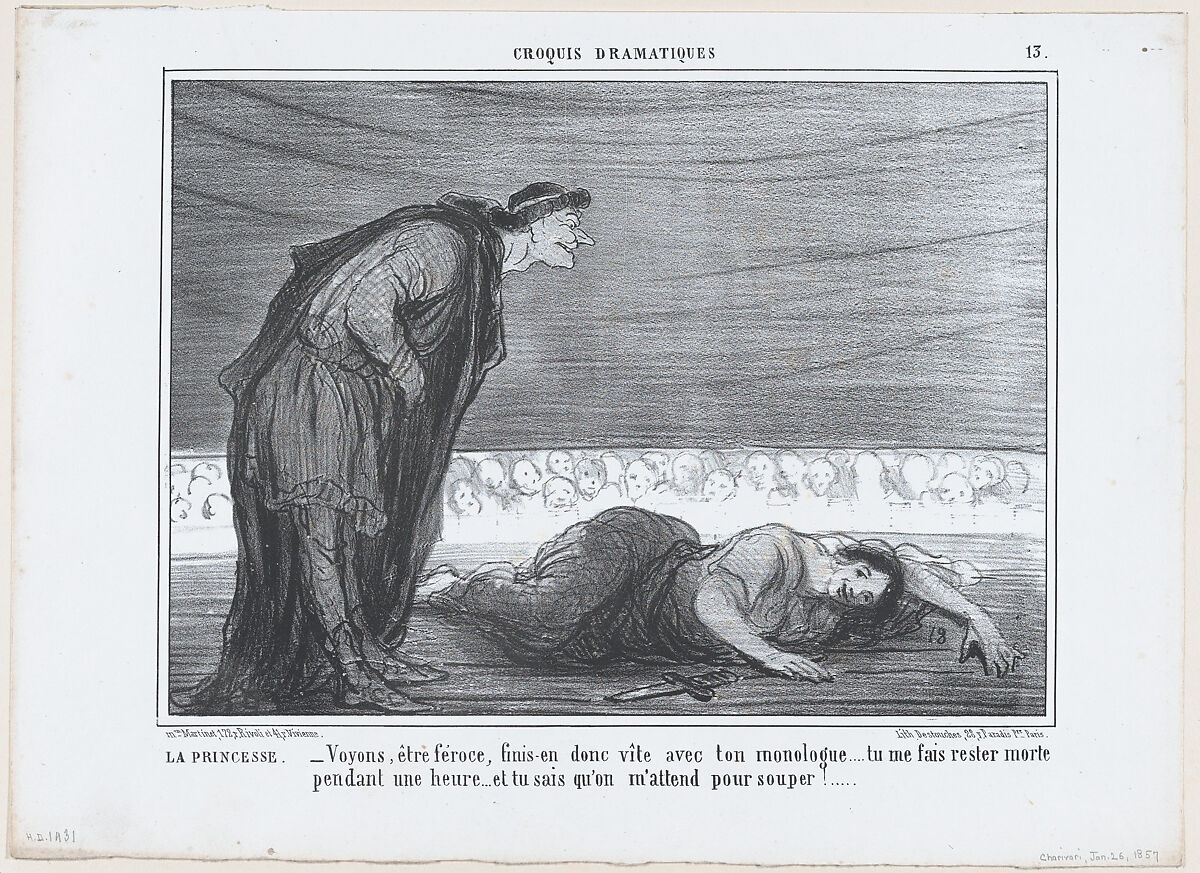 - Title: La Princesse. –Voyons, être féroce, finis-en..., from Croquis Dramatiques, published in Le Charivari, January 26, 1857