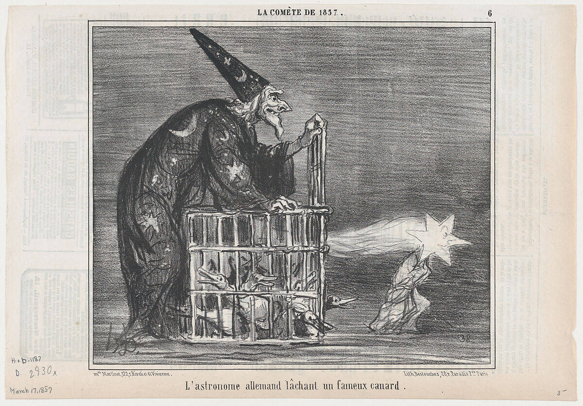 - Title: L'astronome allemand lâchant un fameux canard, from La Comète de 1857, published in Le Charivari, March 17, 1857