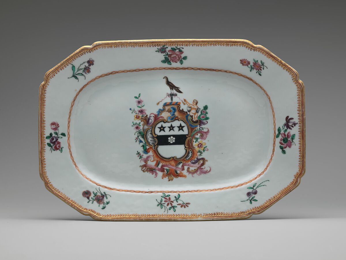This object belongs to a large dinner service (10.149.1–.248) bearing the Townley family coat-of-arms. The service, probably ordered by Justice Samuel Chase (1741–1811) of Annapolis, Maryland, displays the enamel-painted arms of Margaret Townley, Chase's aunt.