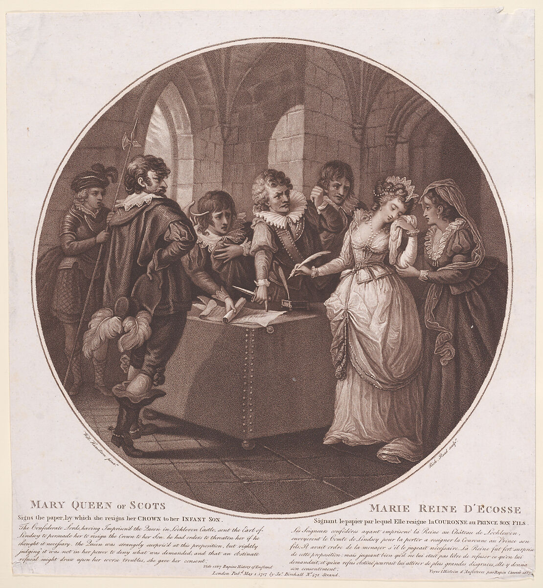 - Title: Mary, Queen of Scots signs the paper by which she resigns her crown to her infant son (from "History of England")