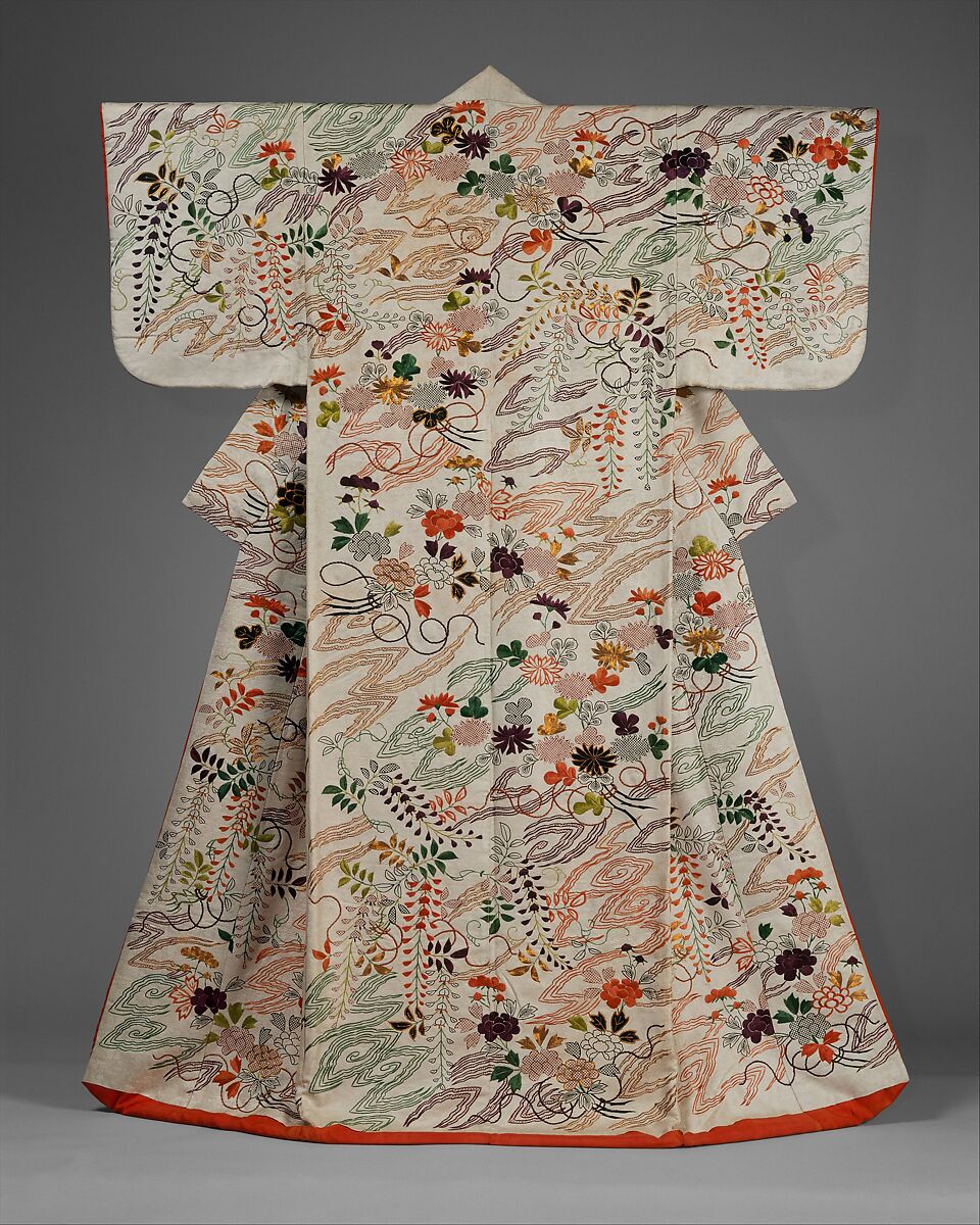 - Title: Outer Robe (Uchikake) with Chrysanthemum and Wisteria Bouquets