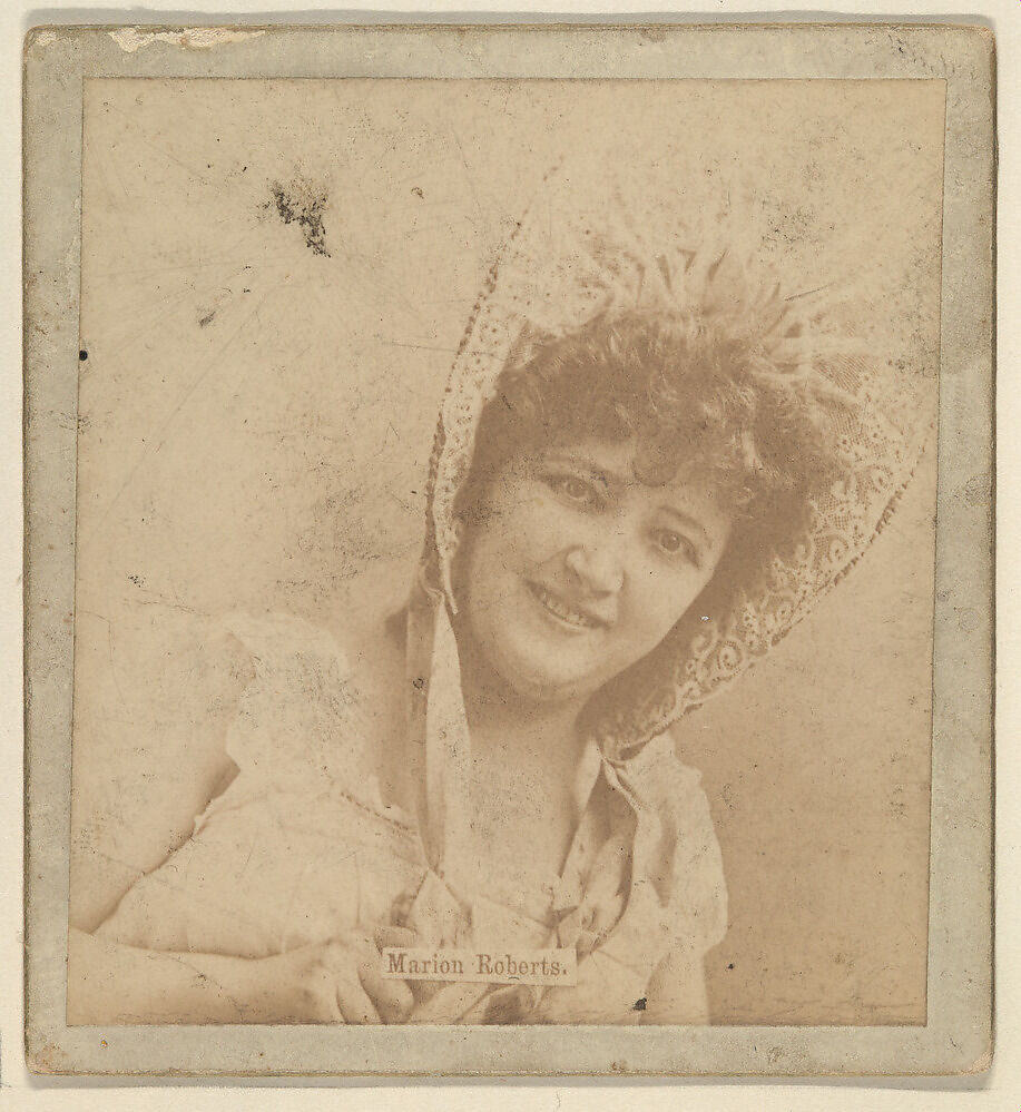 - Title: Marion Roberts, from the Actresses series (N246), Type 2, issued by Kinney Brothers to promote Sporting Extra Cigarettes