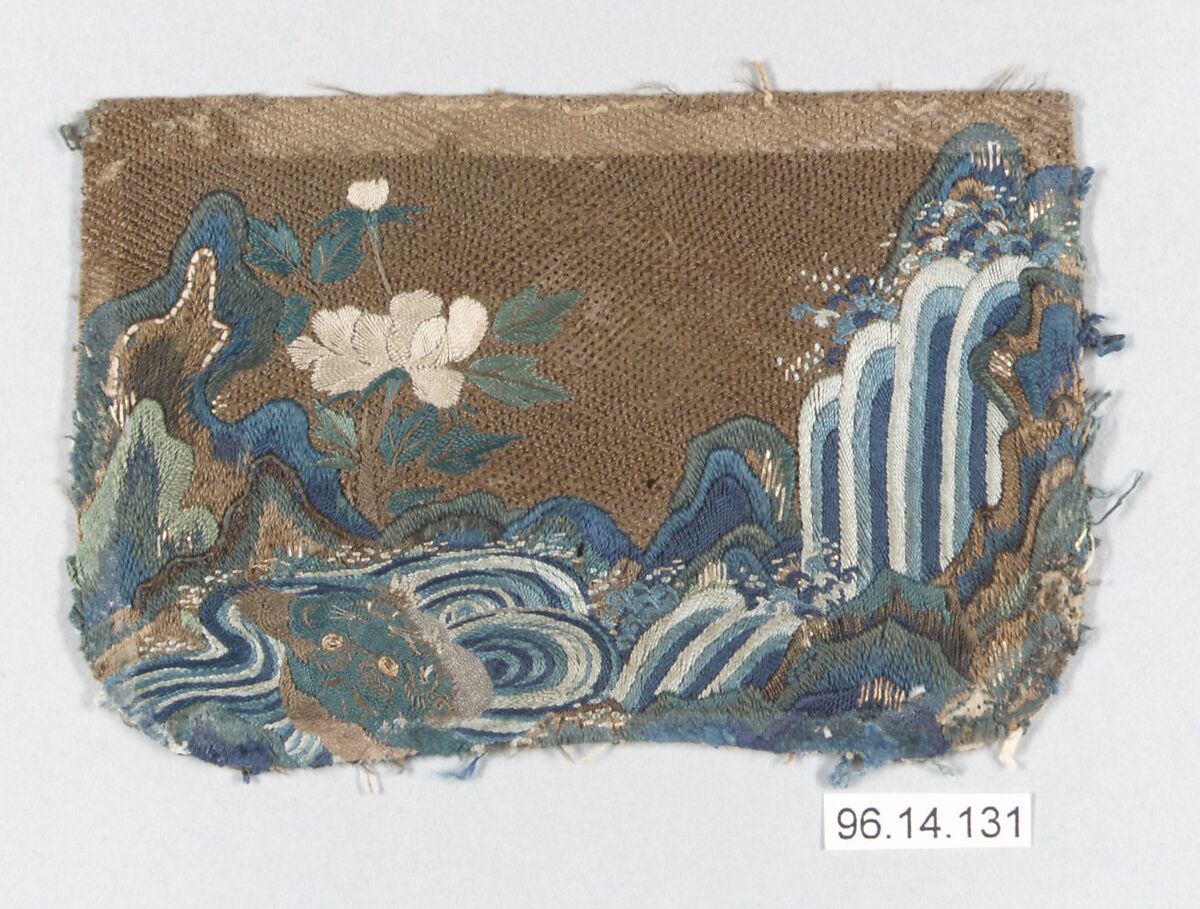 - Medium:Silk, metallic thread; on paper laid over silk