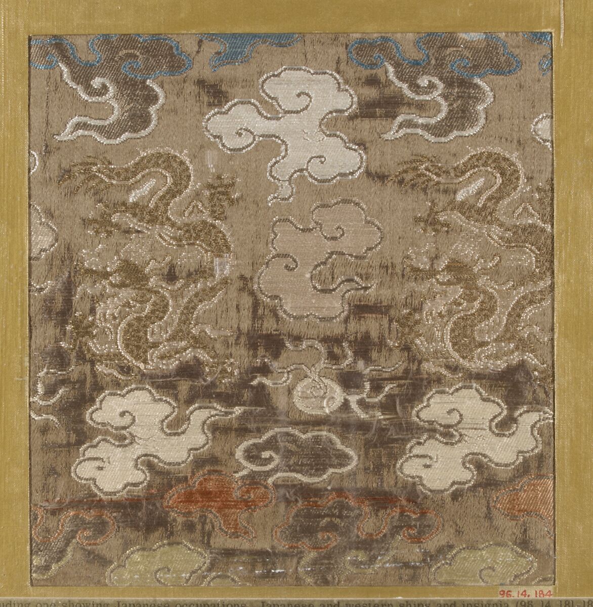 - Title: Textile fragment with pattern of dragons and clouds