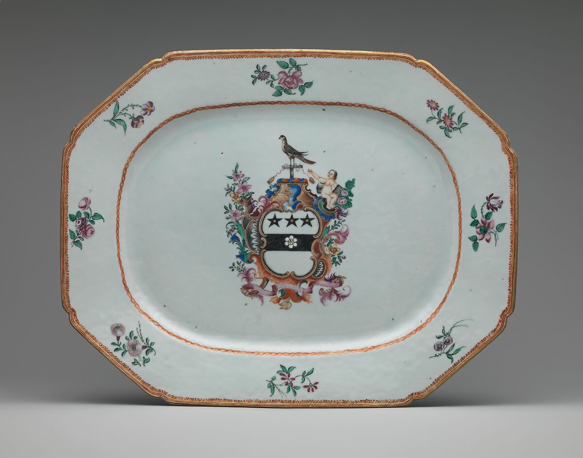 This object belongs to a large dinner service (10.149.1–.248) bearing the Townley family coat-of-arms. The service, probably ordered by Justice Samuel Chase (1741–1811) of Annapolis, Maryland, displays the enamel-painted arms of Margaret Townley, Chase's aunt.