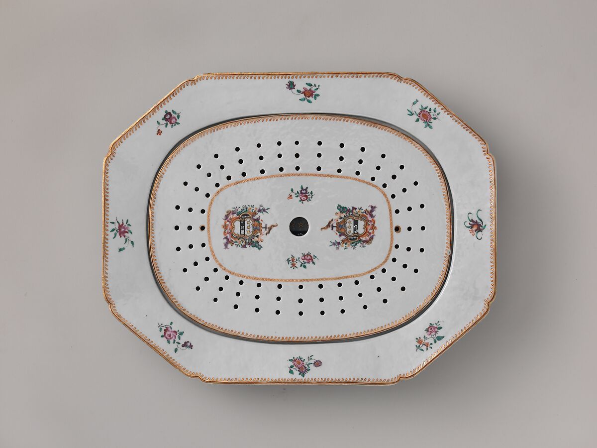 This object belongs to a large dinner service (10.149.1–.248) bearing the Townley family coat-of-arms. The service, probably ordered by Justice Samuel Chase (1741–1811) of Annapolis, Maryland, displays the enamel-painted arms of Margaret Townley, Chase's aunt.