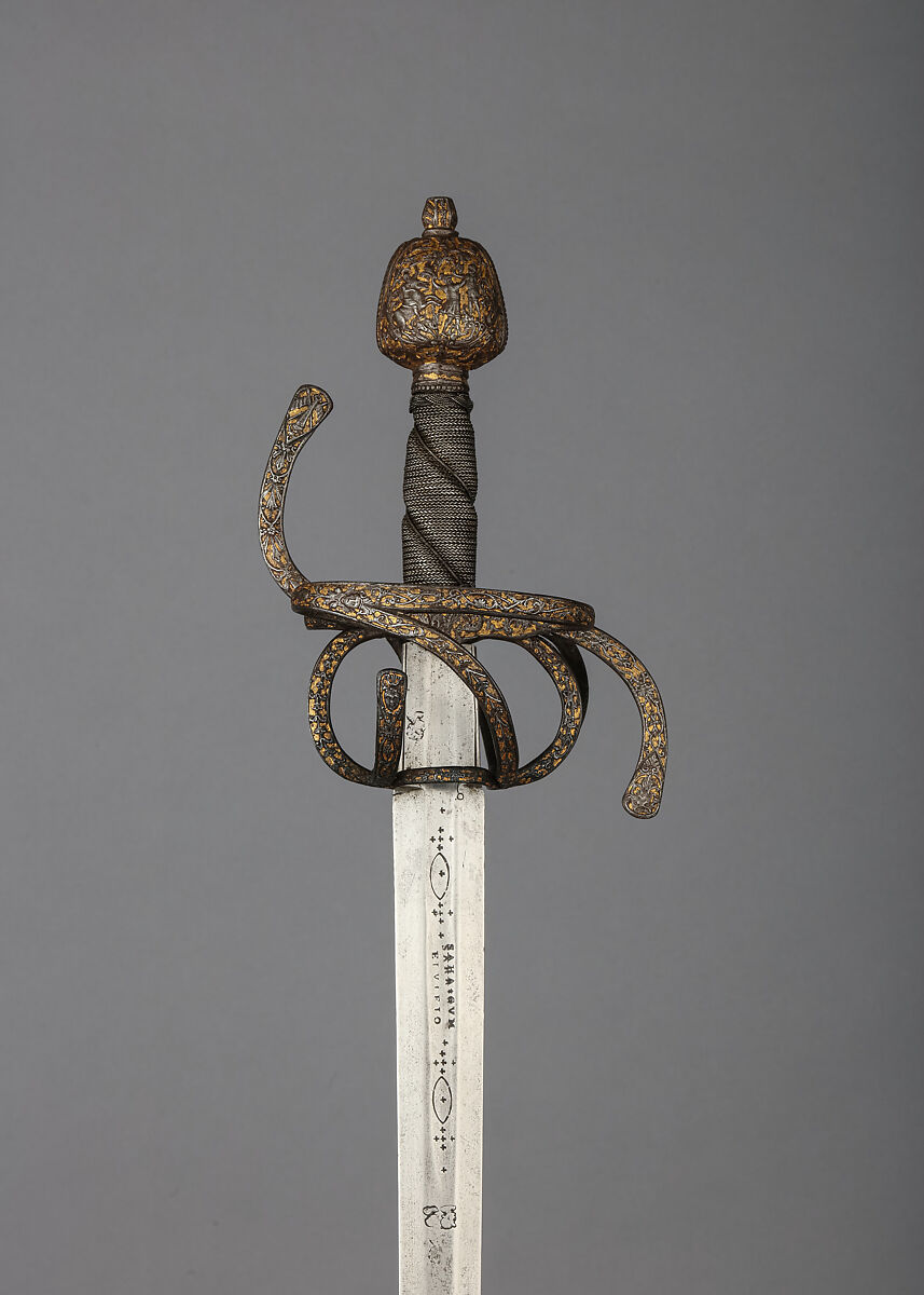 Unless otherwise noted, the materials, attributions, and dating given here refer to the hilts. Rapier blades, invariably of steel, bear a variety of maker’s marks denoting their origin in the two principal centers of blademaking, Toledo in Spain and Solingen in Germany.