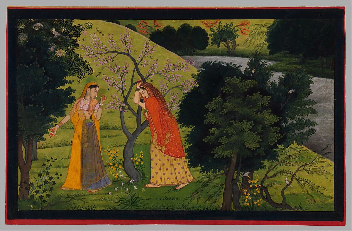 - Title: "Radha with Her Confidant, Pining for Krishna", Folio from the "Second" or "Tehri Garhwal" Gita Govinda (Song of the Cowherd)
