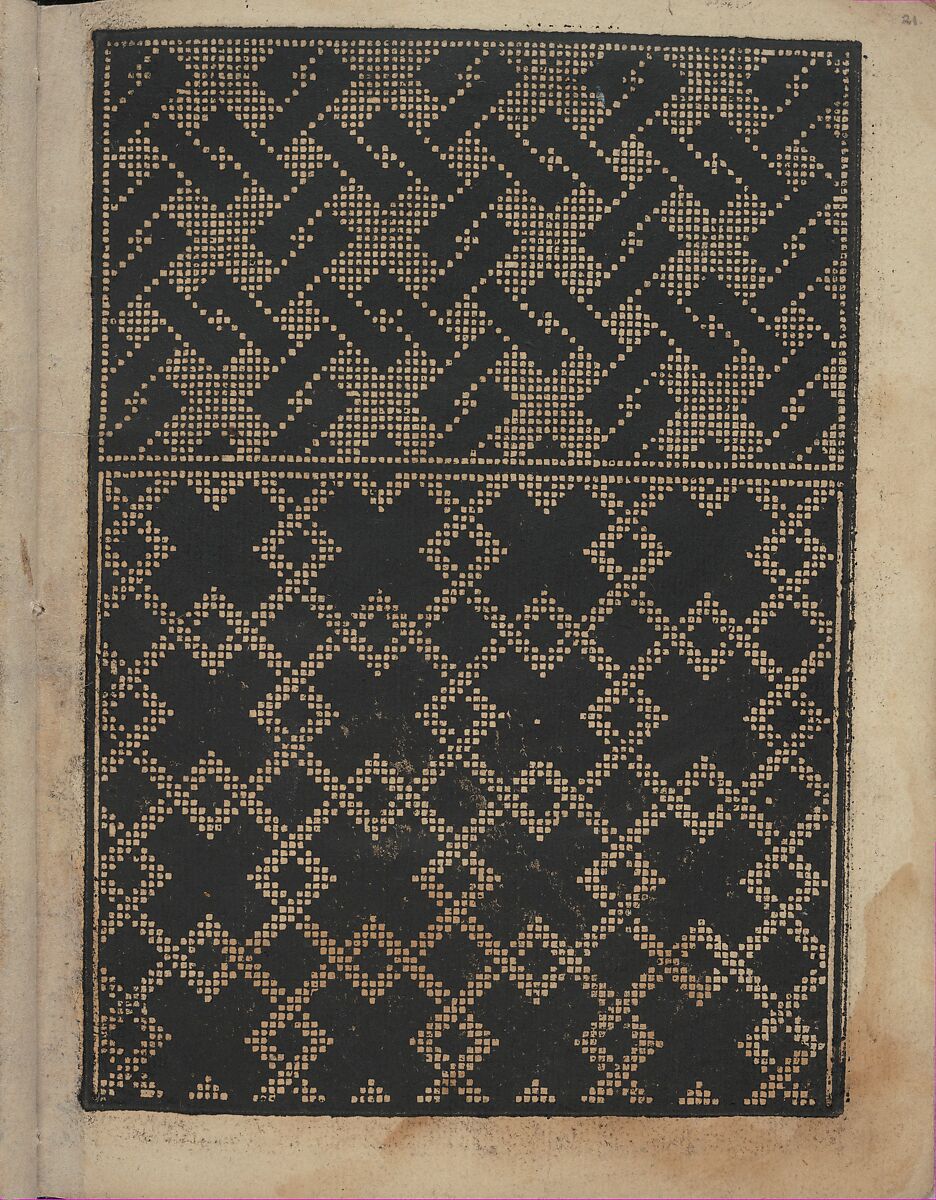 Libbretto nouellamete composto per maestro Domenico da Sera...lauorare di ogni sorte di punti, page 21 (recto)