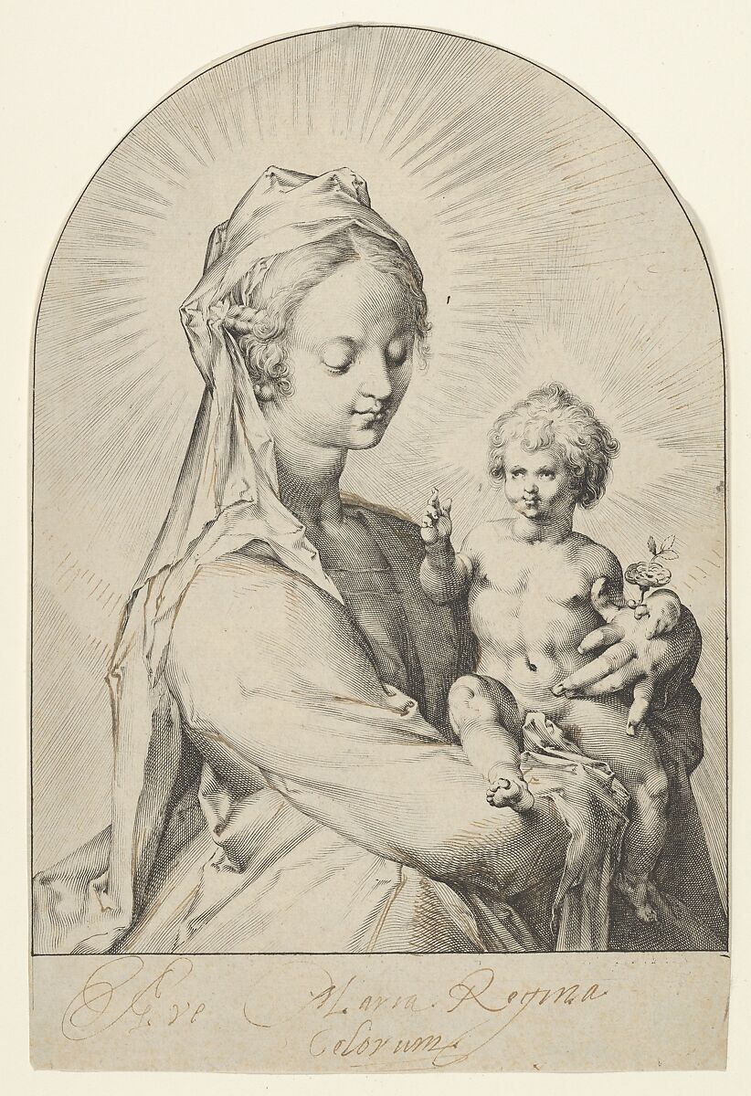 The figures are in half length, the Virgin holding the Christ Child firmly in her arms, while he raises his right hand to the viewer in the traditional gesture of blessing. In the finished composition, Muller made the changes indicated in pen and ink on this proof and also included an illusionistic frame and a formal inscription below, emphasizing the devotional nature of the composition. This is not a scene taken from the Bible but an image intended to inspire reverence and prayer.