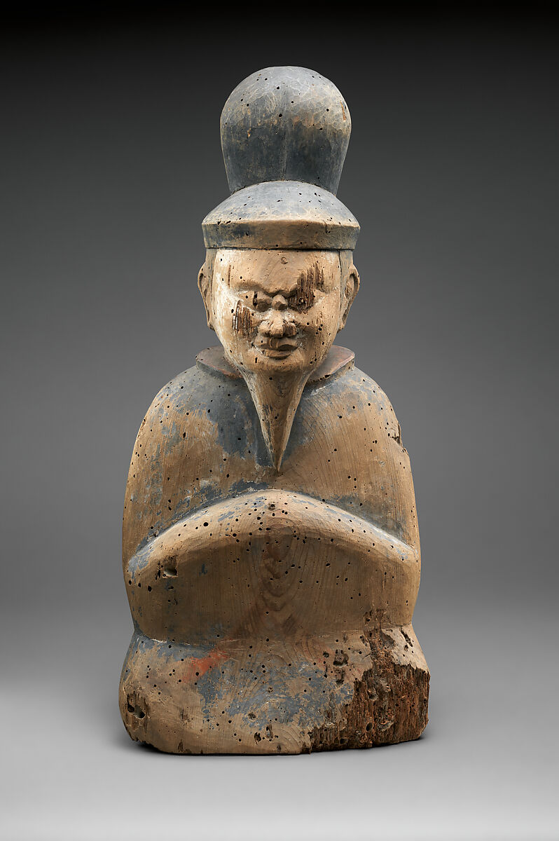 - Medium: Wood; single-block (ichiboku-zukuri) construction, with traces of red and black pigment