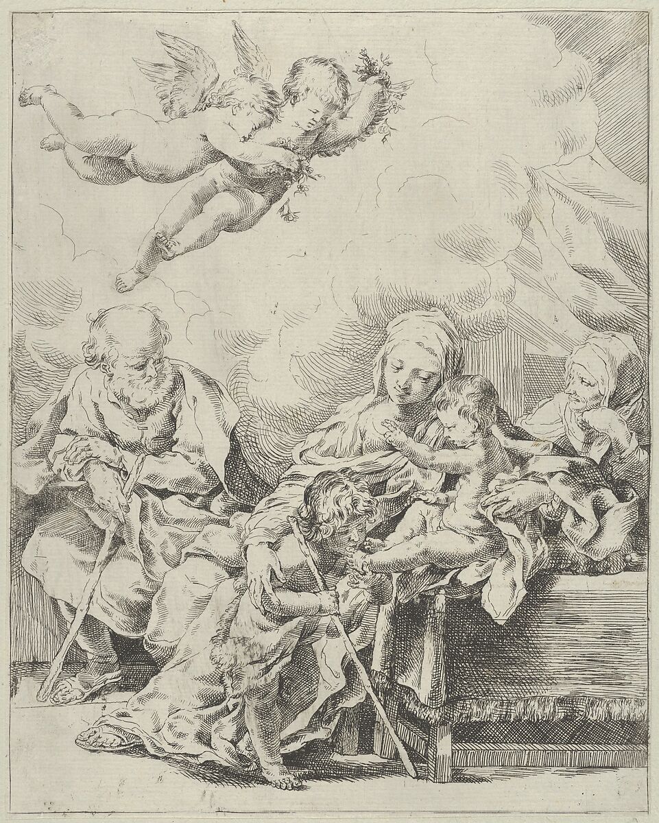 - Title: The Holy Family with young John the Baptist and Saint Elizabeth, two angels above, after Reni