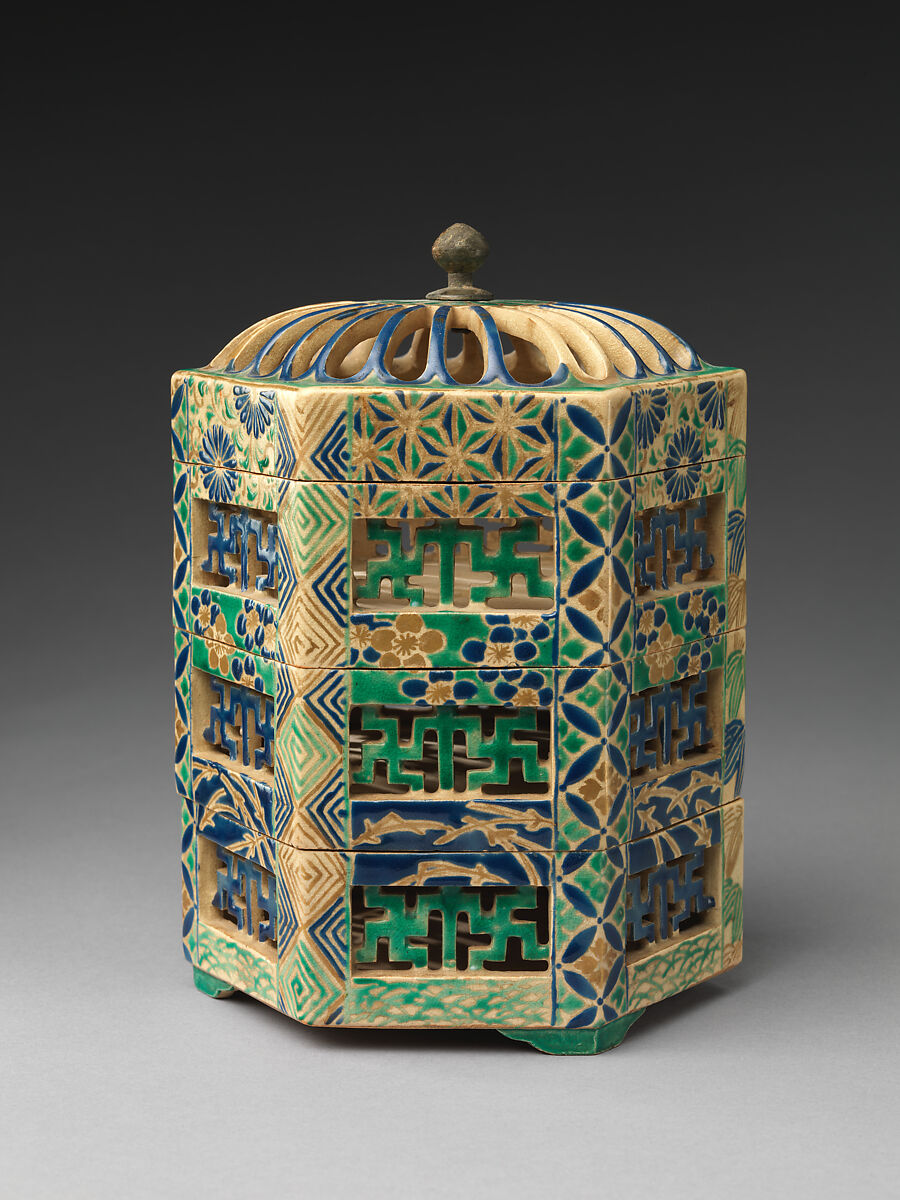 - Title: Reticulated Tiered Box with Pine Needles, Plum Blossoms, and Chrysanthemums