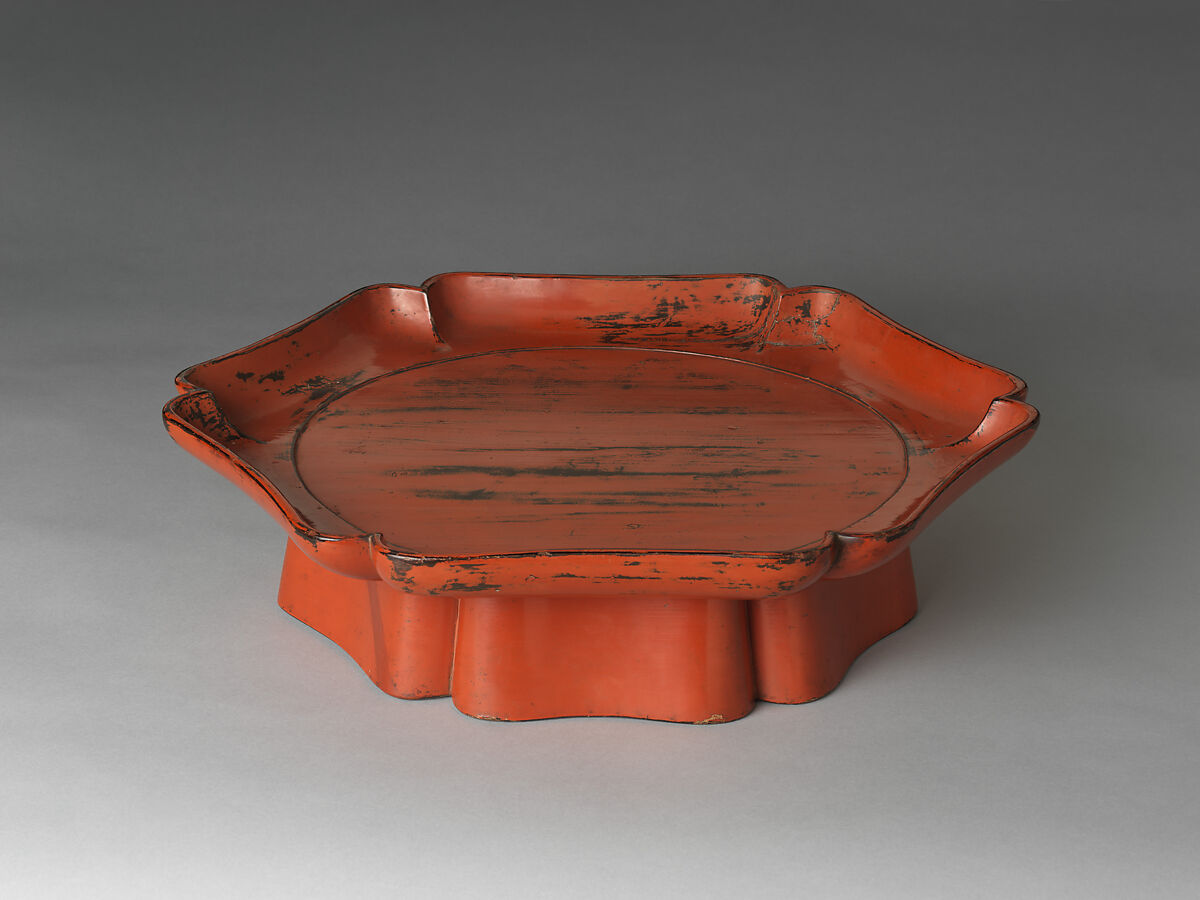 With a lobed silhouette inspired by Chinese flower-shaped ceramics and lacquers, this tray represents the high esteem in which medieval Japan held imported Chinese art works (karamono). Such precious objects came to Japan with the introduction of new schools and teachings of Buddhism, especially that of Zen. Chrysanthemum-shaped trays were made by Japanese craftsmen from around the mid-thirteenth century. Most of these trays were used with tenmoku tea bowls to serve tea.