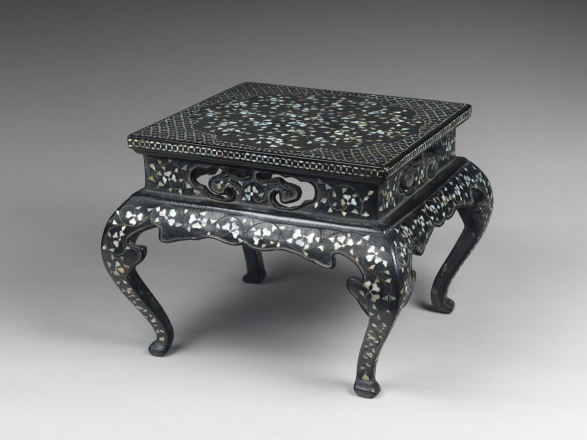 - Medium:Lacquer inlaid with mother-of-pearl and metal wire
