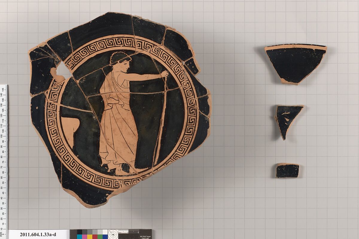 - Title:Terracotta fragments of a kylix (drinking cup)