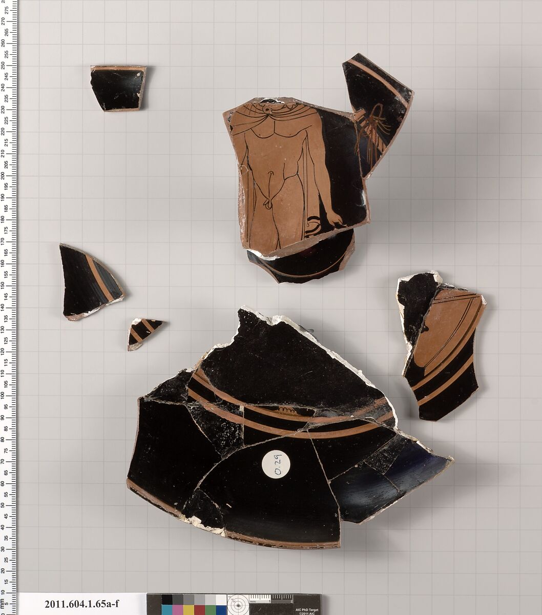 - Title:Terracotta fragments of a kylix (drinking cup)